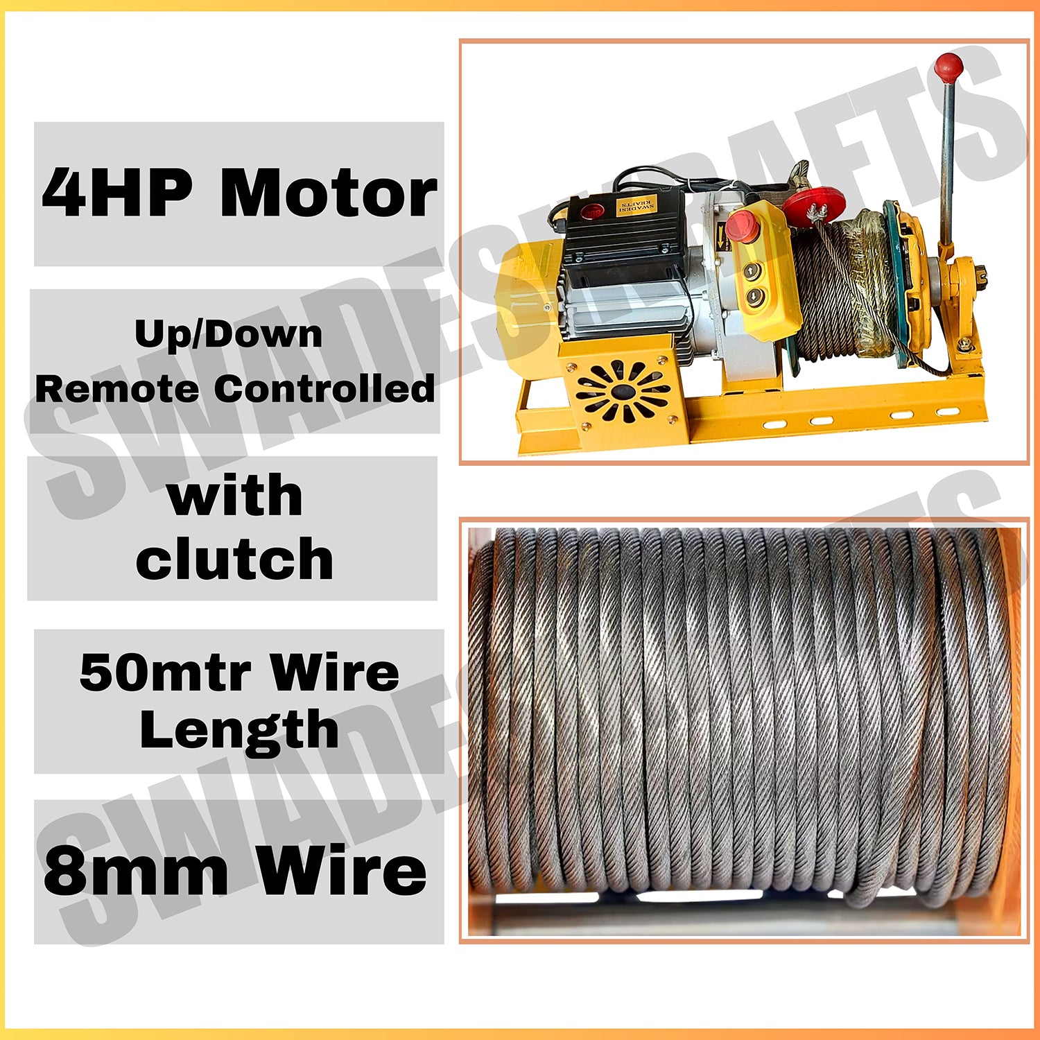SWADESI KRAFTS Electric Mini Lifting Crane with 4HP Electric Motor |8mm Wire Thickness | 40 Meter Length of the Wire and 53-55kg Frame | Mini Crane Scale 500kg