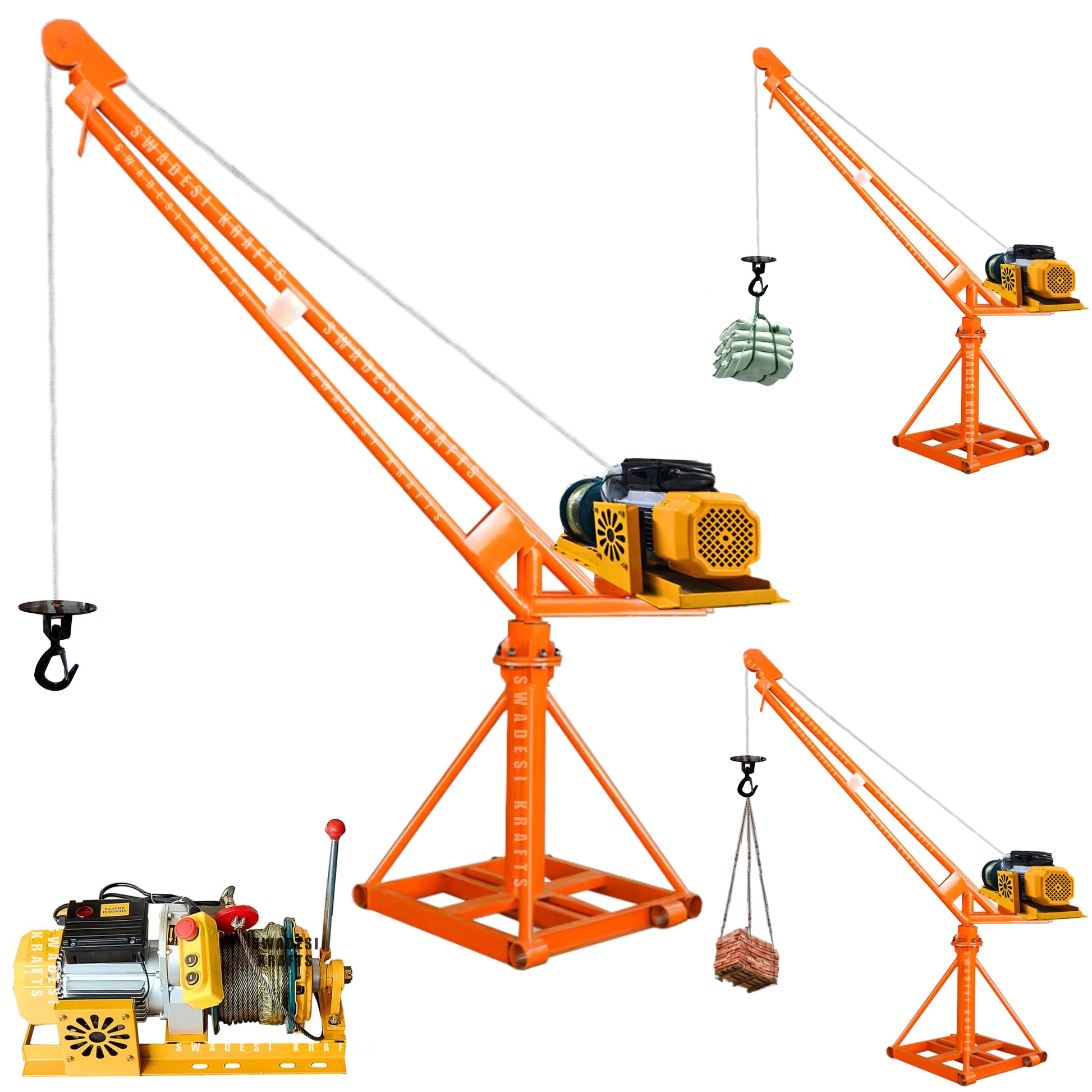 SWADESI KRAFTS Electric Mini Lifting Crane with 4HP Electric Motor |8mm Wire Thickness|40 Meter Length of the Wire and 85-95kg Frame | Mini Crane Scale 500kg