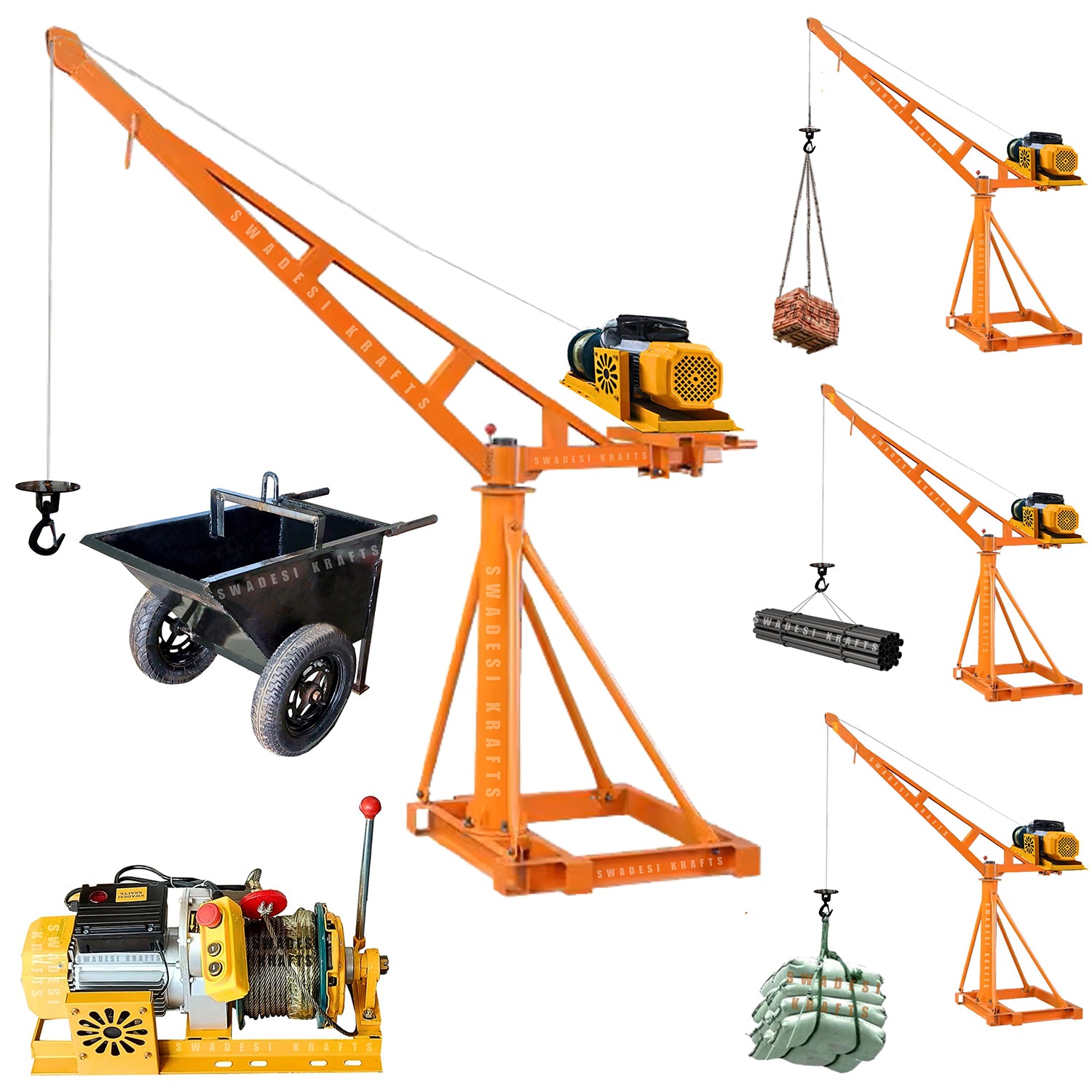 SWADESI KRAFTS Electric Mini Lifting Crane with 4HP Electric Motor & Single Trolly | 8mm Wire Thickness | 40 Meter Length of the Wire and 53-55kg Frame | Mini Crane Scale 500kg