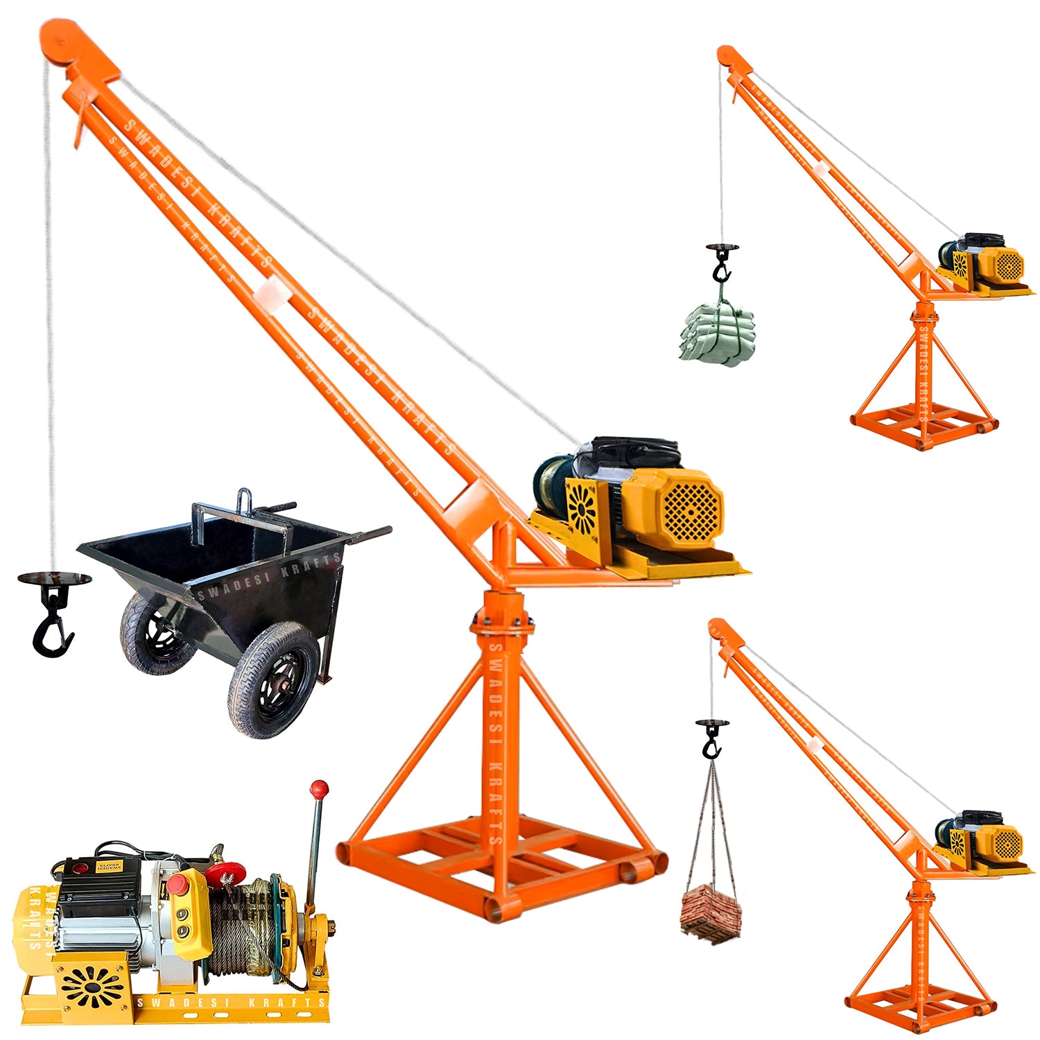 SWADESI KRAFTS Electric Mini Lifting Crane with 4HP Electric Motor & Single Trolly | 8mm Wire Thickness | 40 Meter Length of the Wire and 85-90kg Frame | Mini Crane Scale 500kg