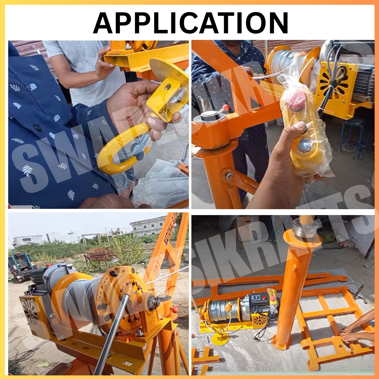 SWADESI KRAFTS Electric Mini Lifting Crane with 4HP Electric Motor with 2 Trolly | 8mm Wire Thickness | 40 Meter Length of the Wire and 57kg with 360 Adjustable Frame | Mini Crane Scale 500kg